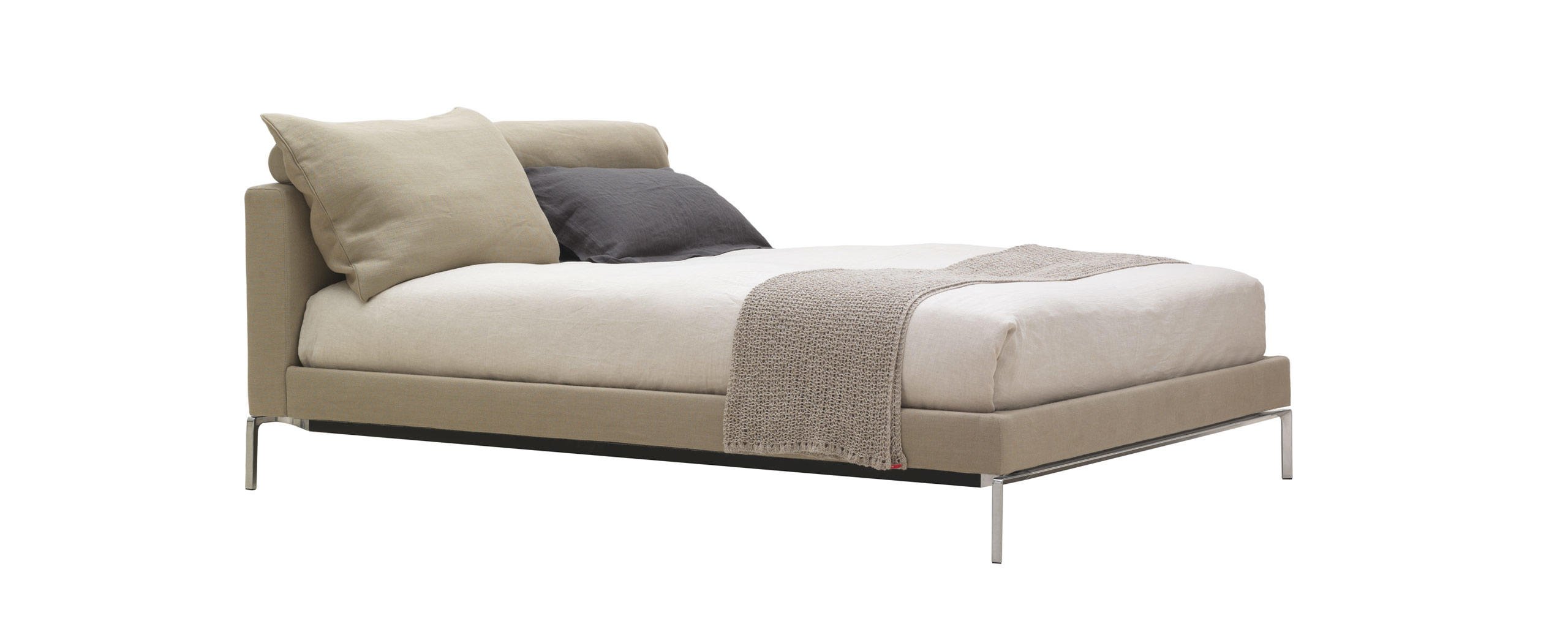 Sollevato da terra e caratterizzato da una linea sobria ed essenziale, il letto Moov rappresenta l’evoluzione naturale dei concetti di comfort e stile già presenti nell’omonimo divano disegnato da Piero Lissoni. La forma elegante è caratterizzata dal giroletto e dalla testiera imbottiti, con rivestimento tessile sfoderabile oppure fisso in pelle. La struttura portante è in multistrato di pioppo dotata di piedini in pressofusione di alluminio lucido. A corredo della testiera, sono previste cuscinature porta-guanciali, trattenute da un rollo cucito sulla parte posteriore, per conferire equilibrio e armonia. Il letto è completato dai comodini Note di Piero Lissoni.